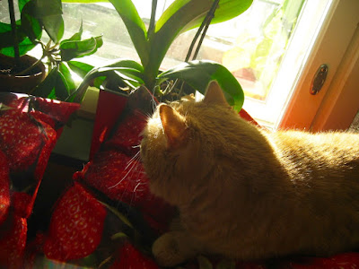 siihen auringonläikkään. Siinä oli paljon mansikanlehtiä, mutta